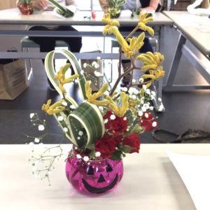 ジャックオーランタンのカボチャに、皆さん思い思いにお花を入れて楽しんで下さいました。