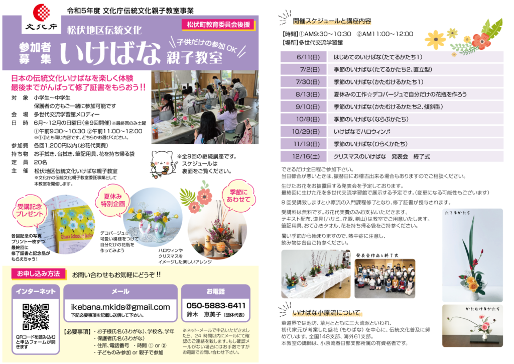 日本の伝統文化いけばなを楽しく体験する、全9回のいけばな講座です。